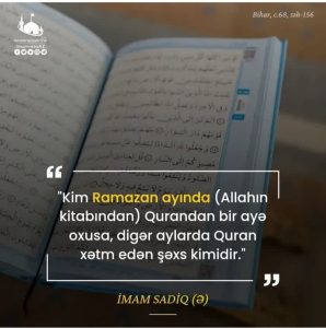 “Kim Ramazan ayında Allahın kitabından (Quran) bir ayə oxusa, digər aylarda bir Quran xətm edən şəxs kimdir.”