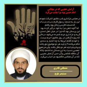 По сообщению информационного портала «Истибсар», белуджский мустабсир ханафитского мазхаба Мустафа Кадири рассказывает, что с первых дней, проживая рядом с шиитами, в его сознании начали возникать вопросы. Чтобы доказать правильность своих убеждений, он вошёл в научную среду шиитских хауза (религиозных учебных центров), однако…